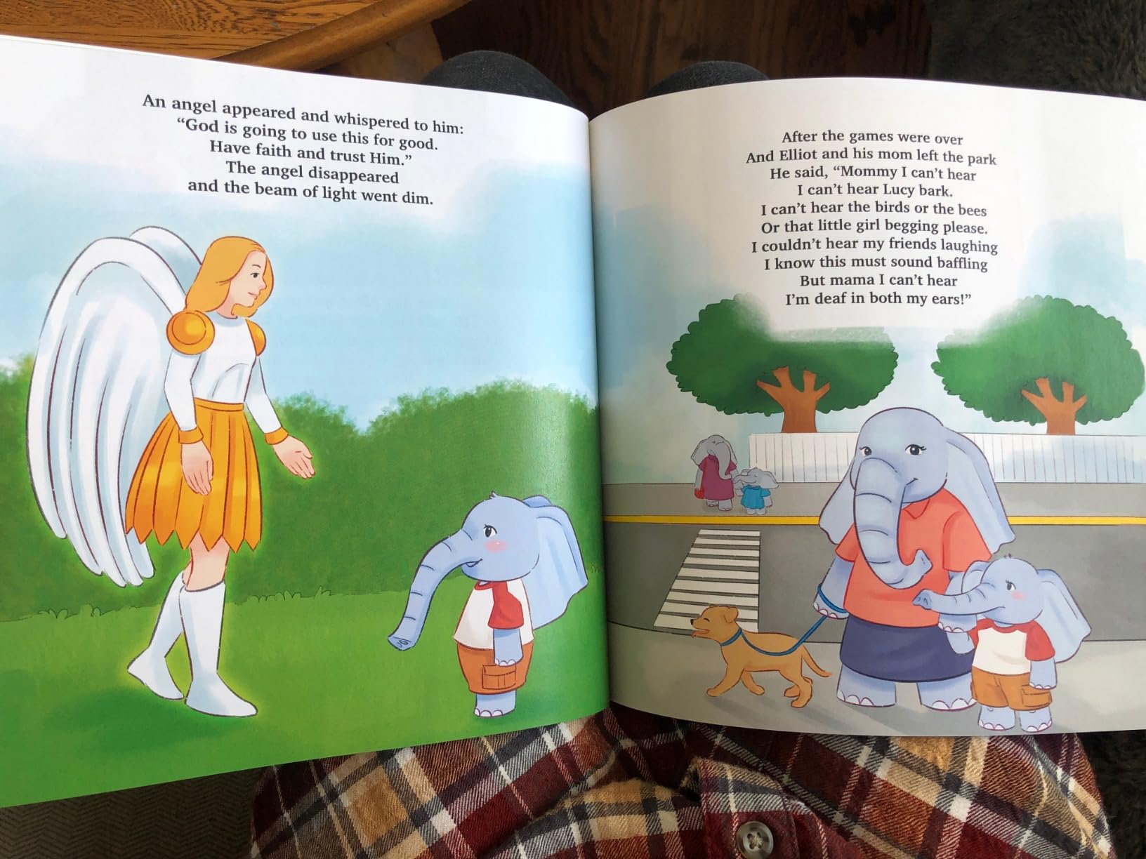 An angel visits little Elliot at the park. As the world around him goes silent, he hears the angel say, “God is going to use this for good. Have faith and trust Him.” Elliot the elephant becomes weary and fearful… But not for long! He turns to prayer in no time and surrenders his life to God.